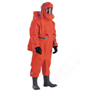 本連體服由聚脂纖維制作而成,雙面涂層為Hypalon?防火面料,550克每平方米。正壓式空氣呼吸器外置型。代爾塔獨特的剪裁方式使接縫數量達到最低。密封拉鏈由胯下延伸到圍繞頭部一周。組件和內貼接縫經過內部和外部的雙硫化,可以密封接縫。通過可移動緊收配套裝置可將標準尺碼的安全靴:40-44和標準尺碼的手套:9-9.5,整合到連體服上。連體服還包括4個閥門(4毫巴),以減少內部壓力(2個閥門在胸前,另外2個在腿部)。